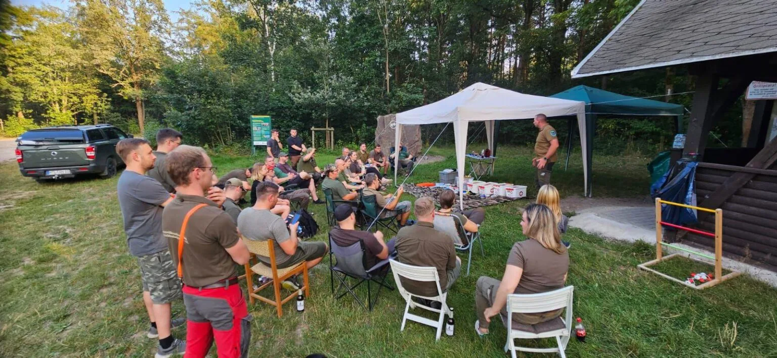 Auch im Jahr 2024 fanden sich wieder fast 40 junge oder jung gebliebene Jägerinnen und Jäger beim „Camp der Jungen Jäger“ zusammen. Wie bereits in vielen Jahren zuvor wurde das Camp erneut hervorragend organisiert und durchgeplant, dieses Jahr vom Obmann der Jungen Jäger Sachsen, Maximilian Kaiser (Instagram: JungeJägerSachsen). Das Lager wurde auf einem Waldparkplatz in Wermsdorf aufgeschlagen. Alle Teilnehmenden übernachteten entweder in ihren Autos, Dachzelten oder Zelten. Wermsdorf liegt zwischen den Städten Grimma und Riesa – das Natur- und Naherholungsgebiet erhielt bereits im Jahr 2018 die Auszeichnung zum „Waldgebiet des Jahres“.